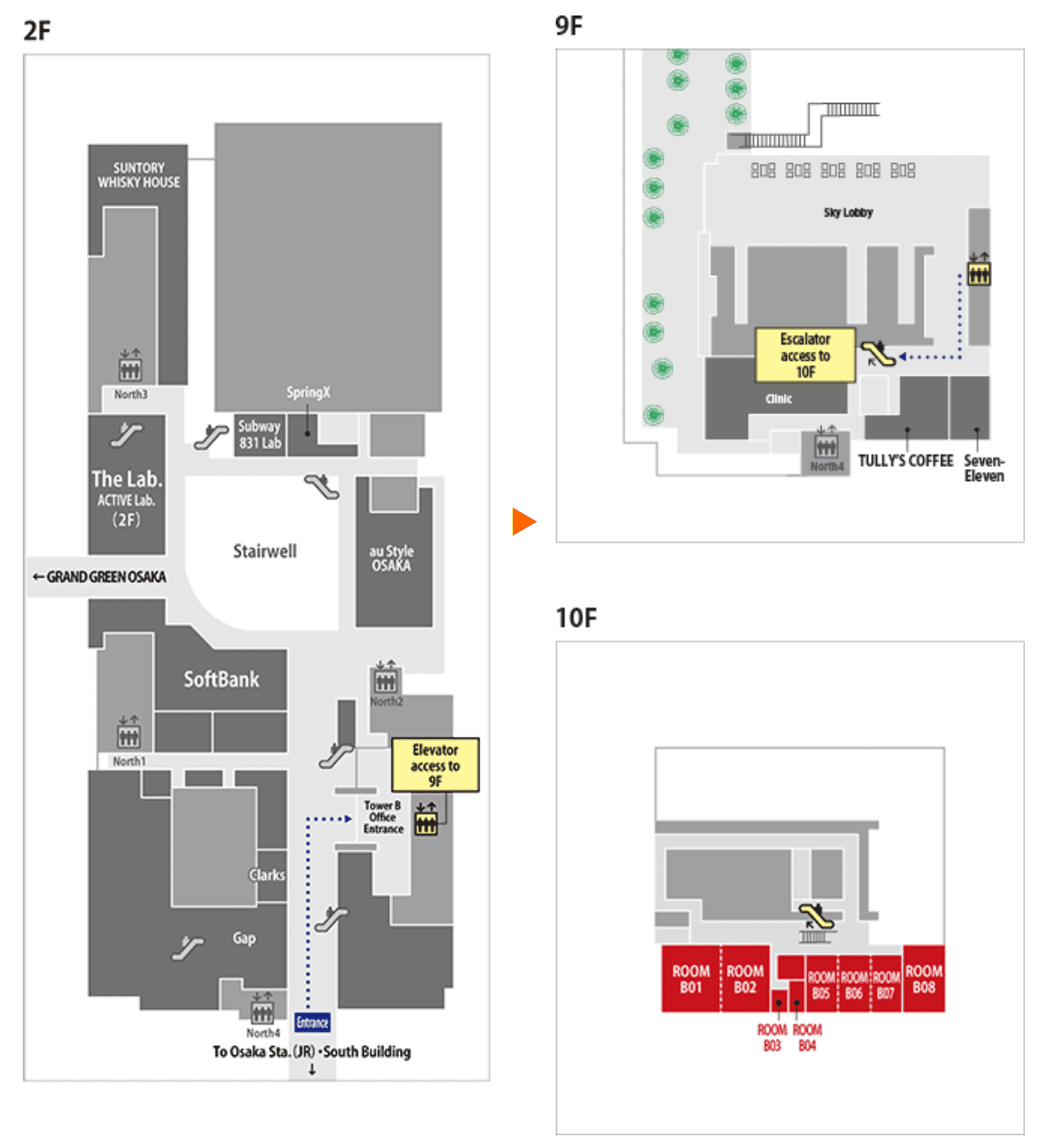 Access at the Grand Front North Tower B 2F to 10F
